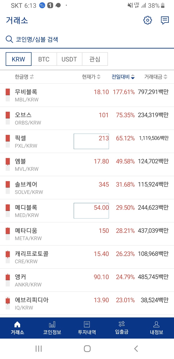 1원대 코인이 다 10원대로 업그레이드되었네요