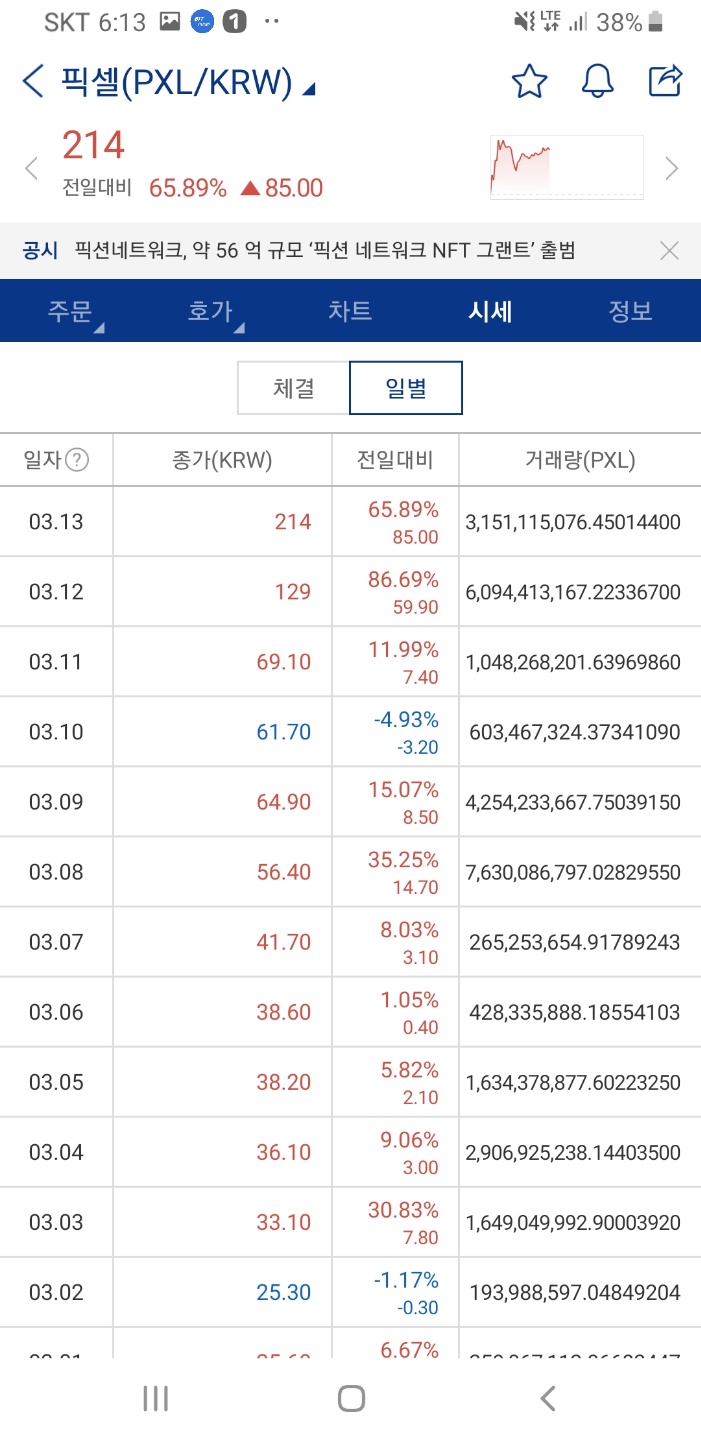 | 2021년 3월 13일 업비트 펌핑코인(앵커,픽셀,휴먼스케이프,람다,메탈,메디블록,옵저버,솔브케어) (0) | 2021.03.13 |