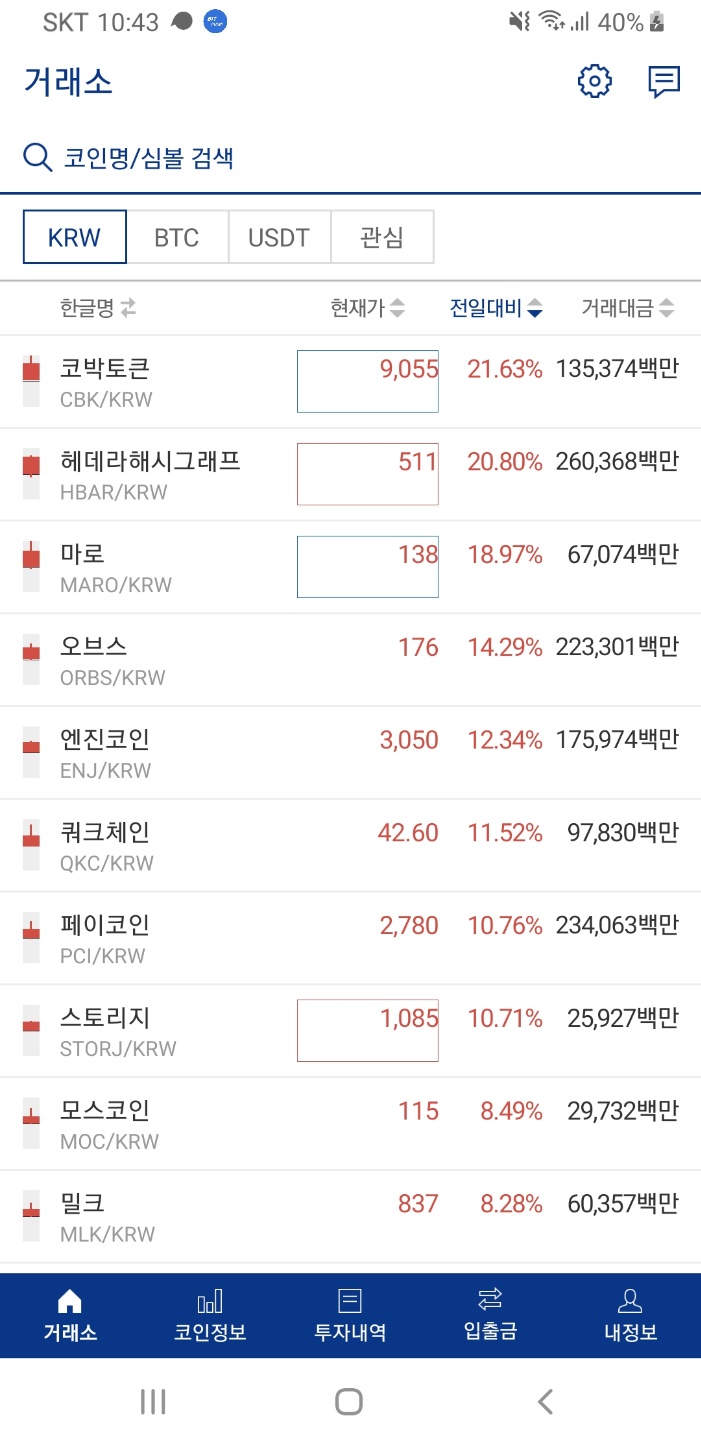 오늘은 예전 2000~3000원대 코인들이 올라가나