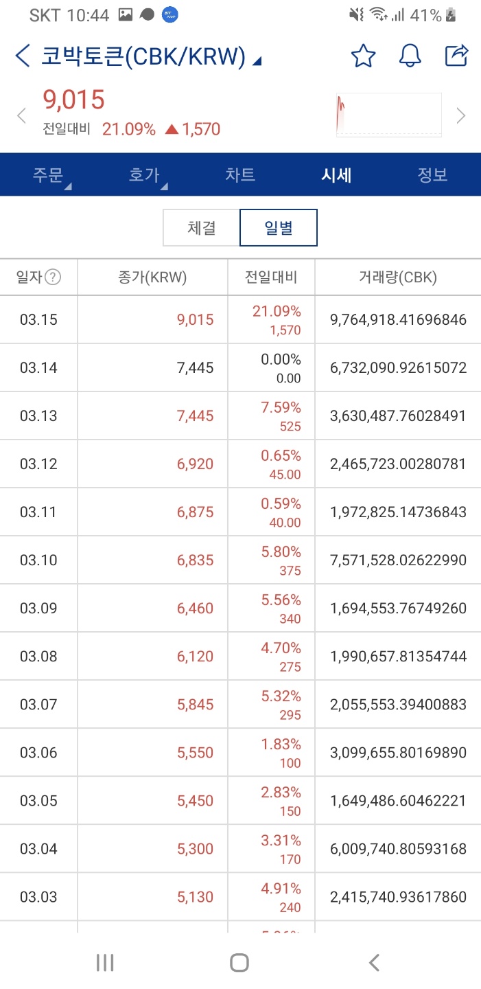 코박토큰은 3월1일부터 오늘까지 쭉 양봉입니다.