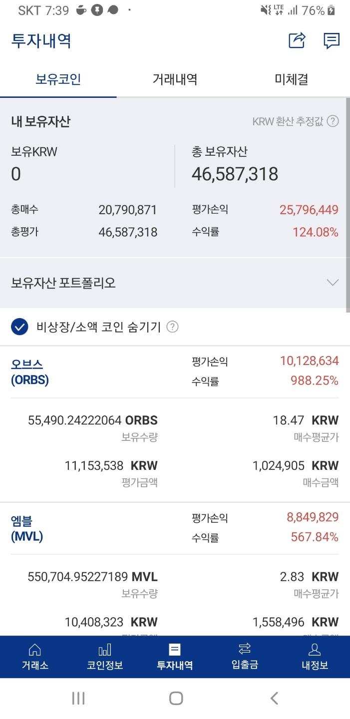 가장 기대안했던 코인이 가장 높은 수익률이라니...