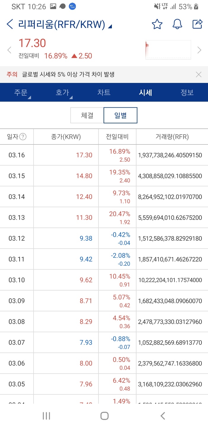 | 2021년 3월 15일 업비트 펌핑코인(코박토큰,헤데라해시그래프,마로,오브스,엔진코인,쿼크체인,페이코인,스토리지) (0) | 2021.03.15 |