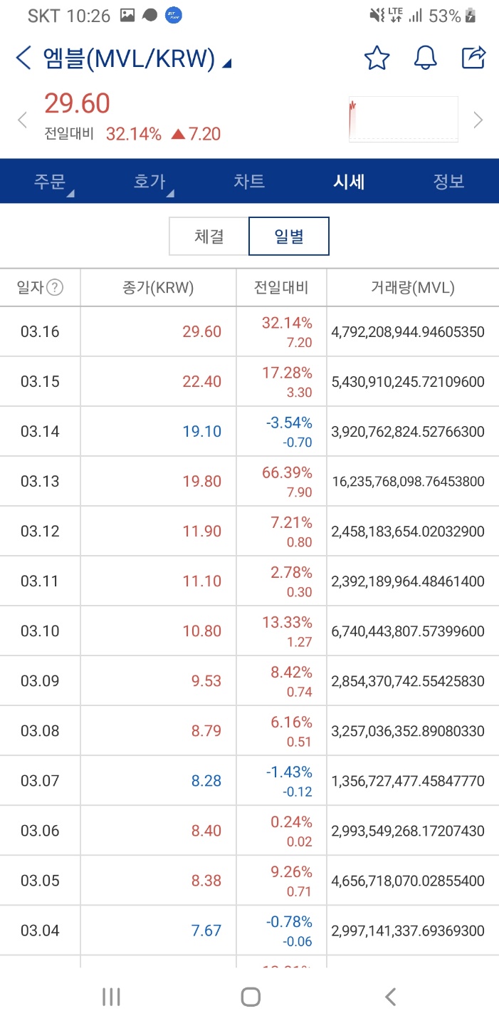 어제는 오브스 오늘은 엠블이 펌핑되서