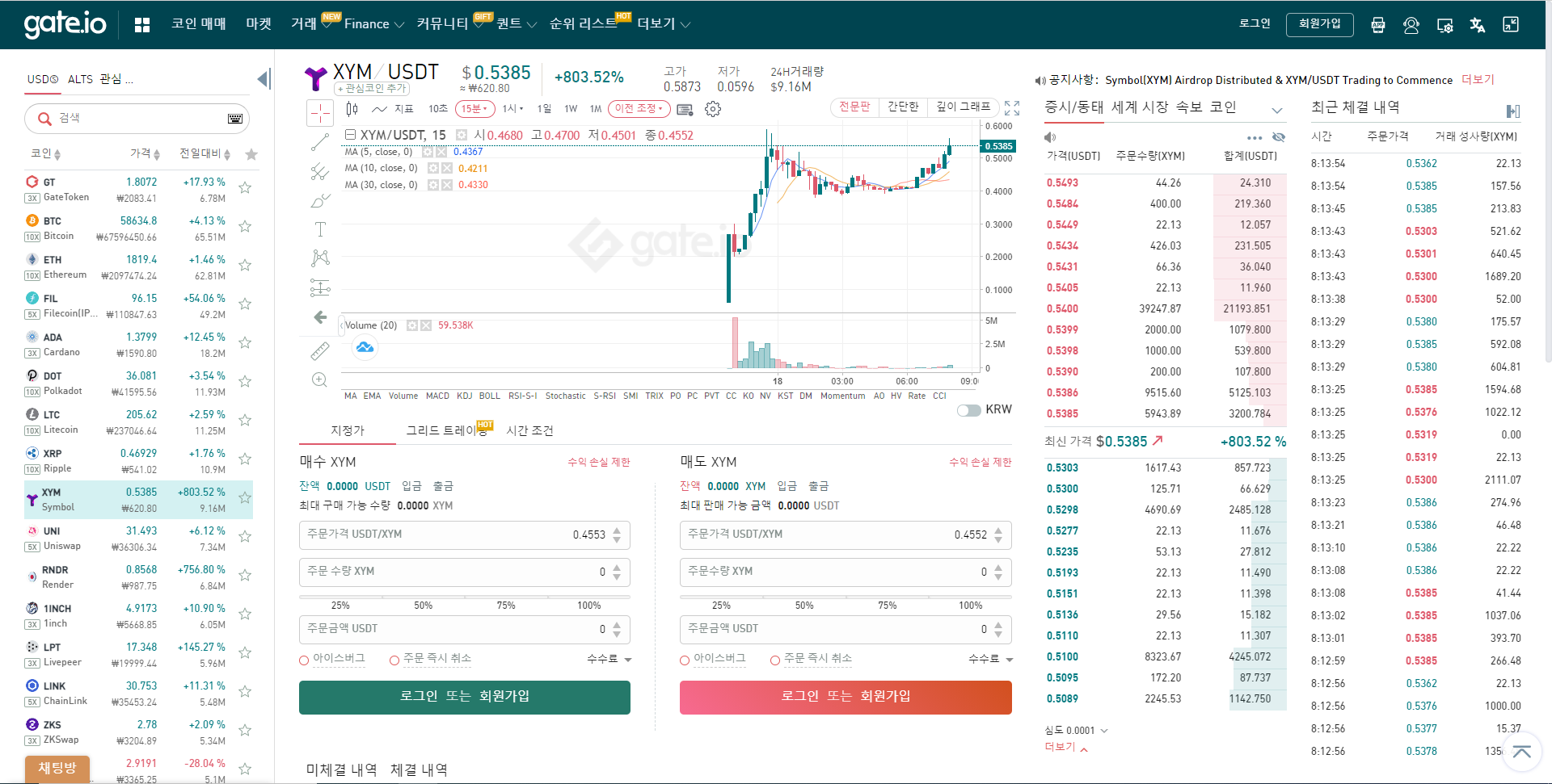 어제 밤 10시에 게이트 거래소에 상장된다는
