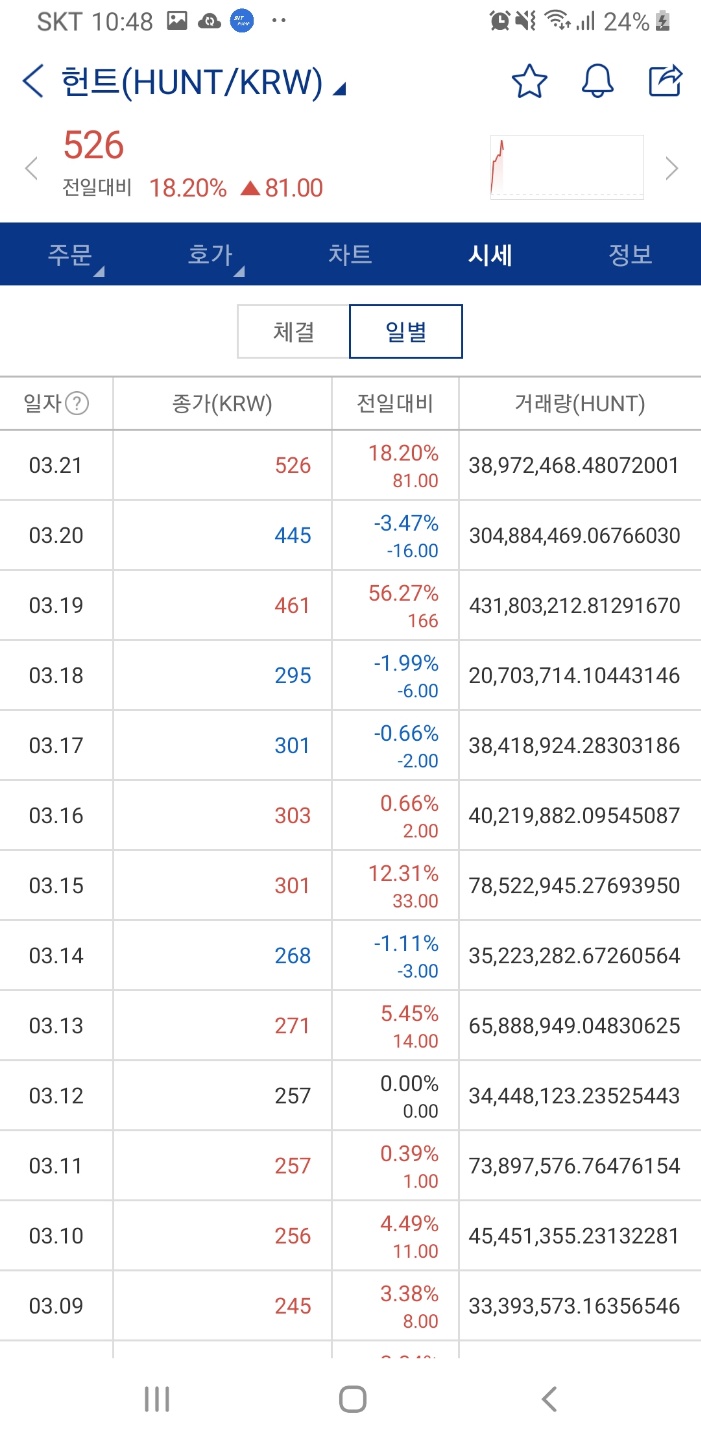 헌트도 어제 고점갱신하고 어느새 500원대를