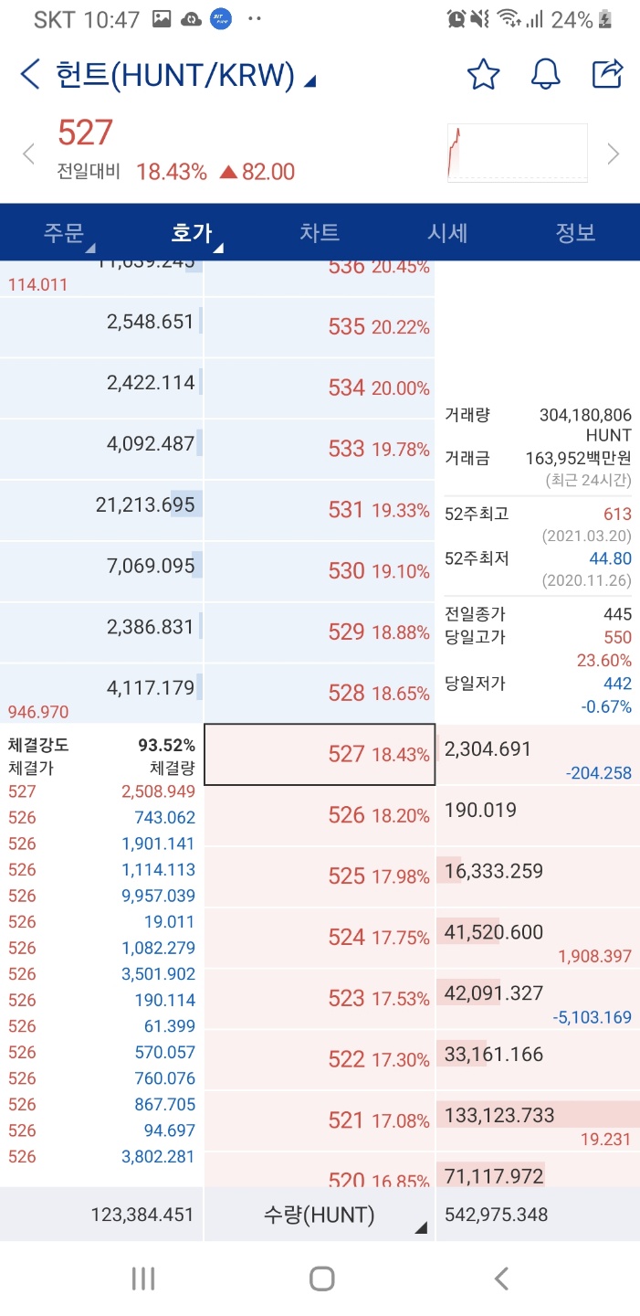 헌트도 어제 고점갱신하고 어느새 500원대를