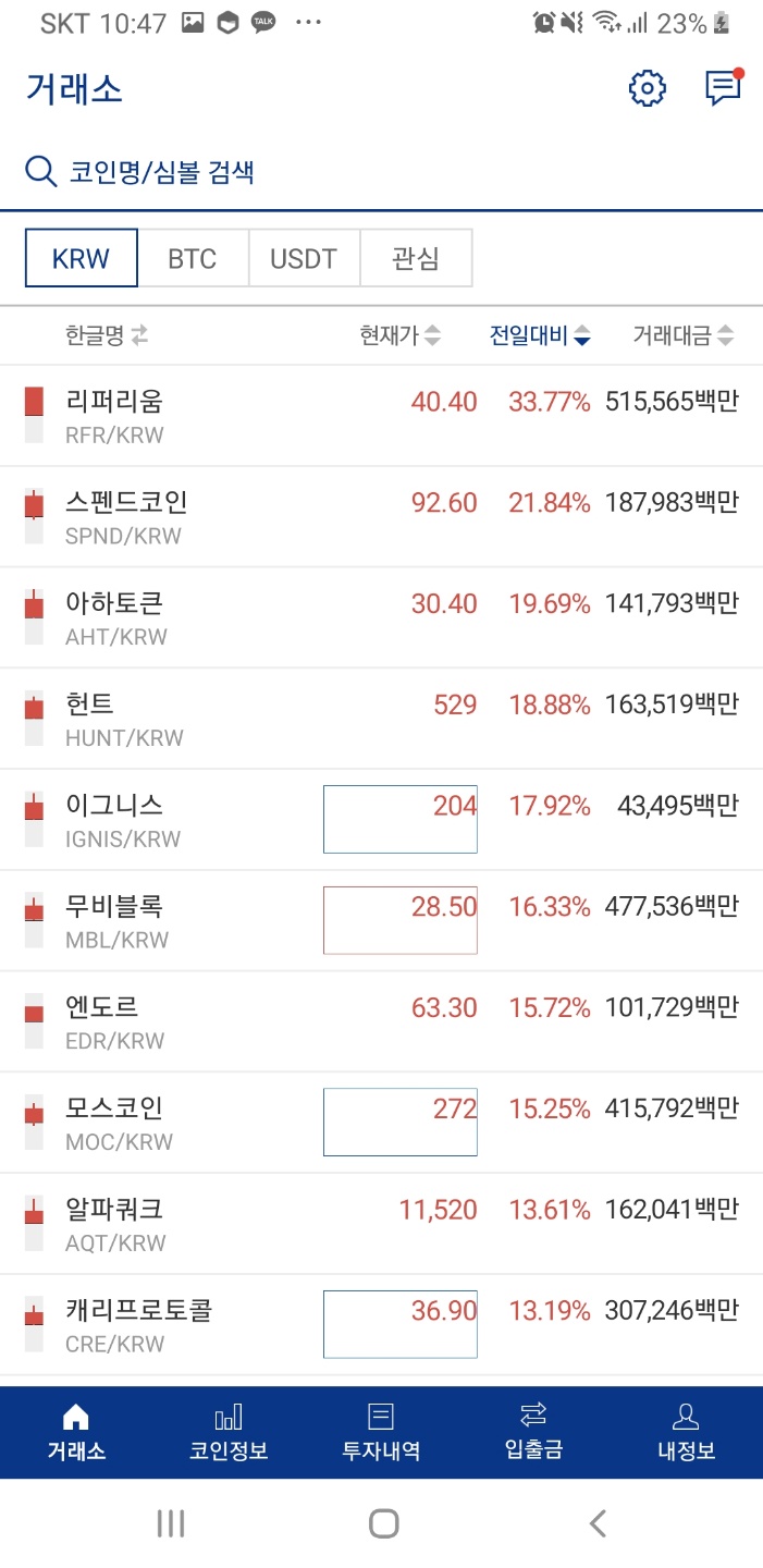 이렇게 하루종일 빨간불 들어왔던 코인들이