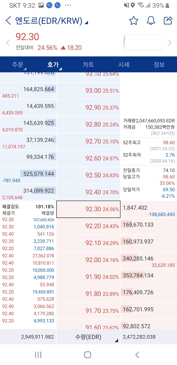 넘었는데 엠블도 이렇게 90원대쯤에서 단번에