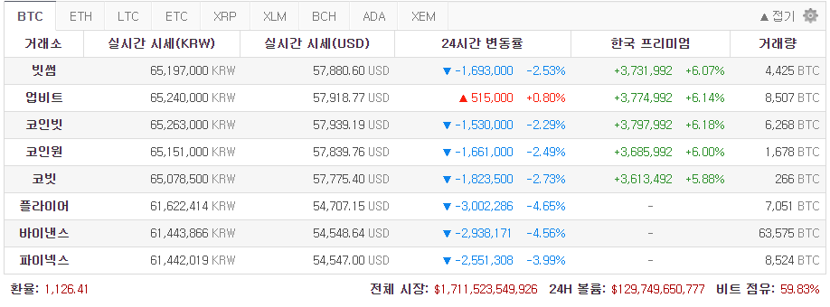 이제 김프 5%를 넘어 6%대에서