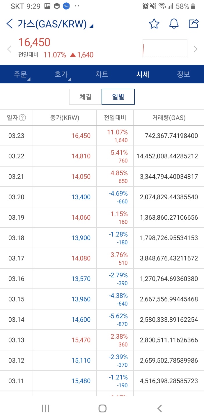 오늘은 가스가 좀 오르긴 했지만