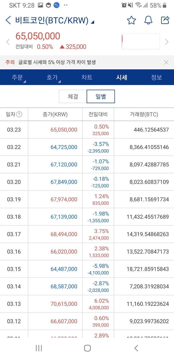 비트코인 일별 등락폭을 보면 그동안