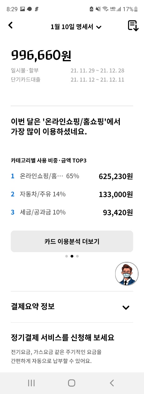 진짜 일시불로 긁으면서 생각한게 한단계 아래인 베뉴를 사고