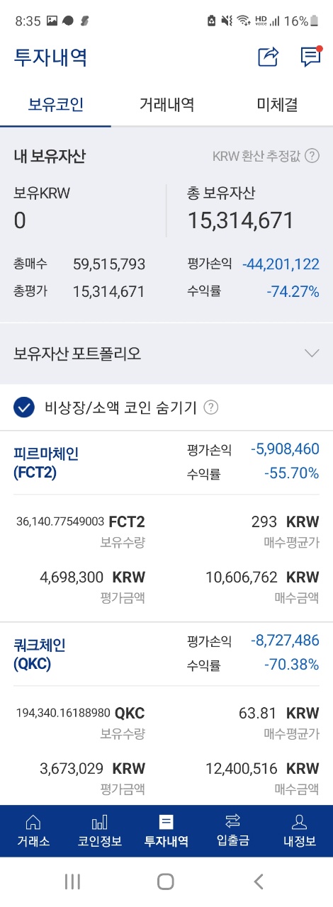 어떻게든 코인이 회복하거나 다시 전처럼 중간정도까지만 회복해도 손절하고