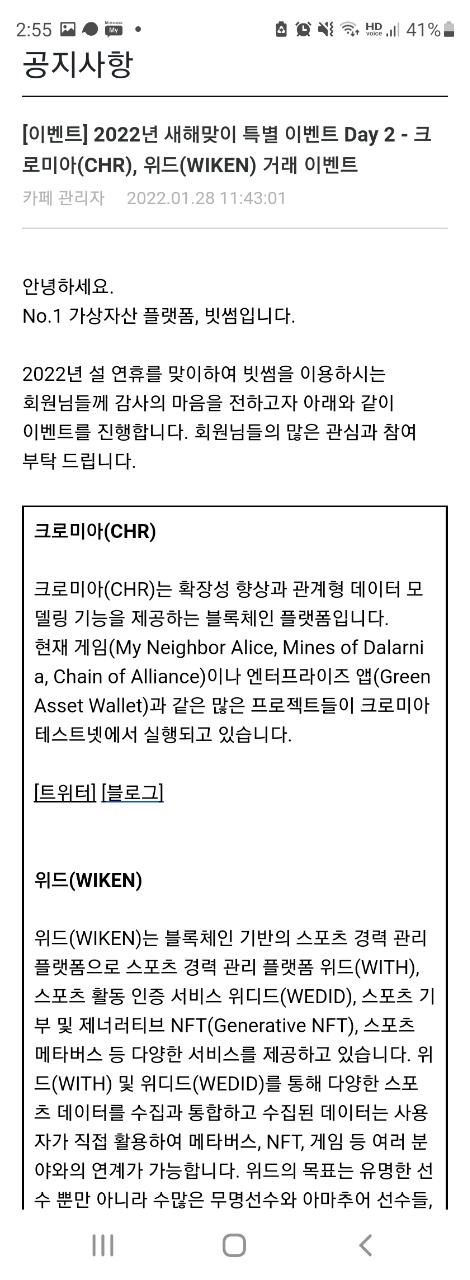 | 2022년 빗썸 새해맞이 이벤트 3일차(게이머코인,온톨로지가스) (0) | 2022.02.02 |