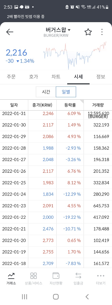 버거스왑 심볼 둘다 반짝하고 20% 이상 상승하다가