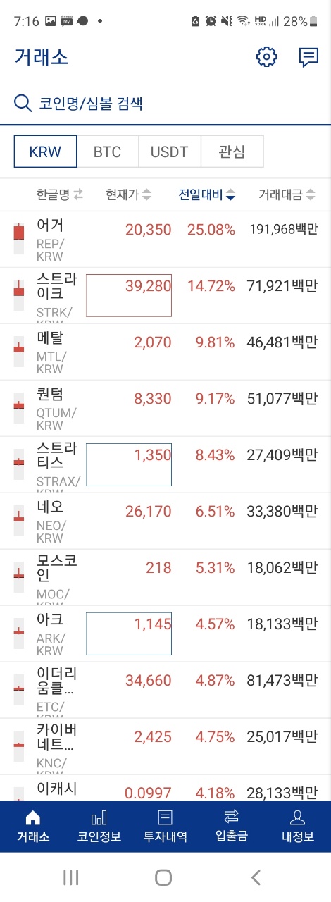 아침까지만해도 별다른 움직임이 없었던 코인들이
