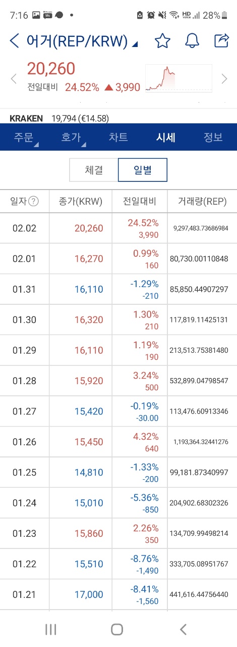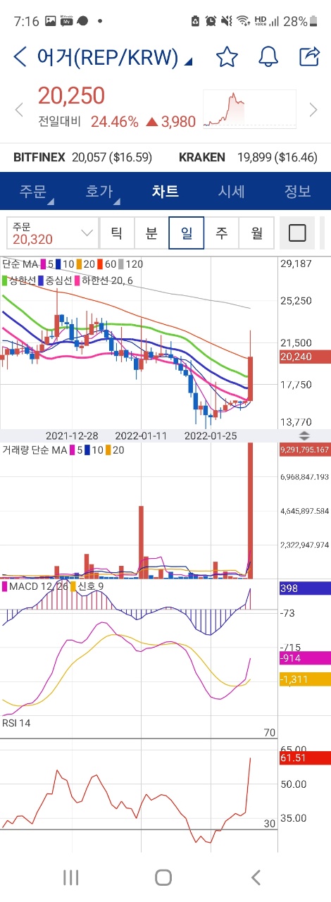 어거는 순간적으로 40%가까이 상승했다가 떨어지는 중인데