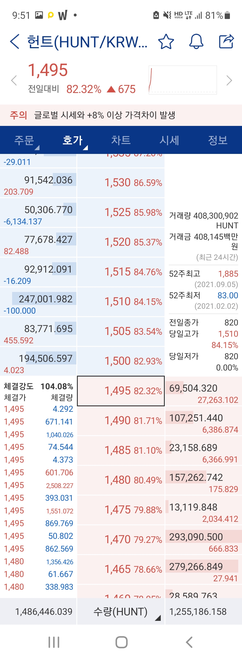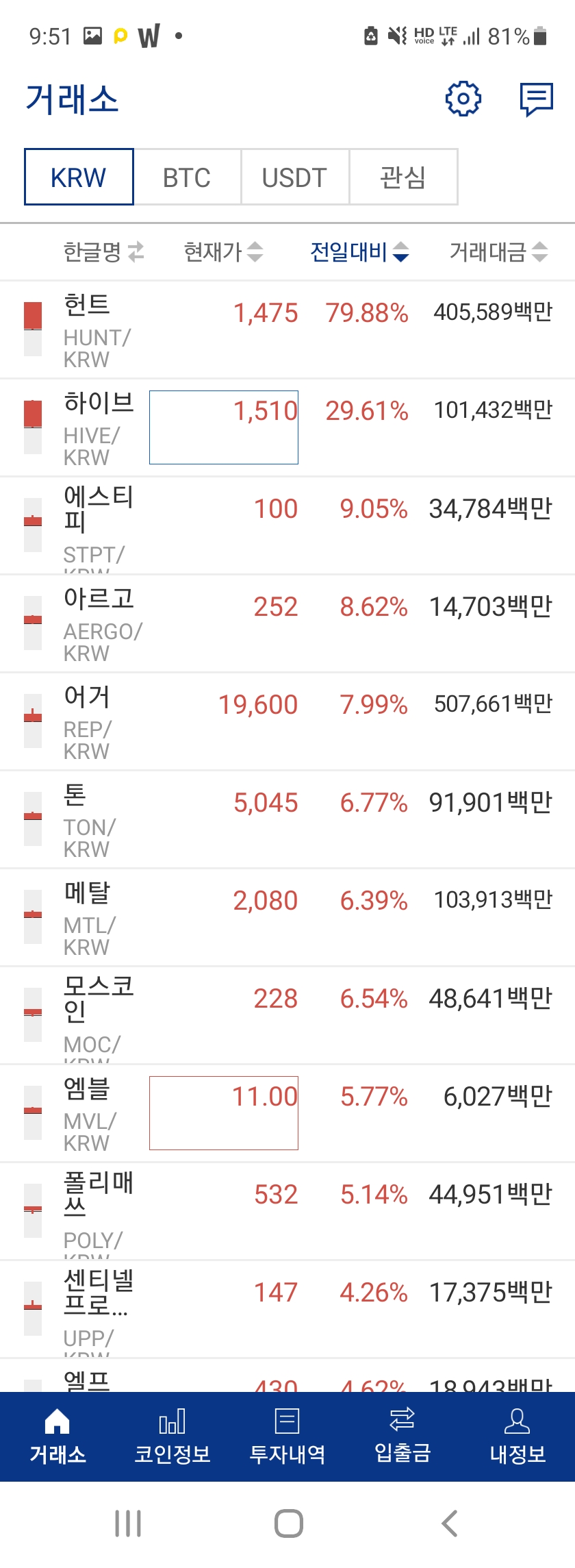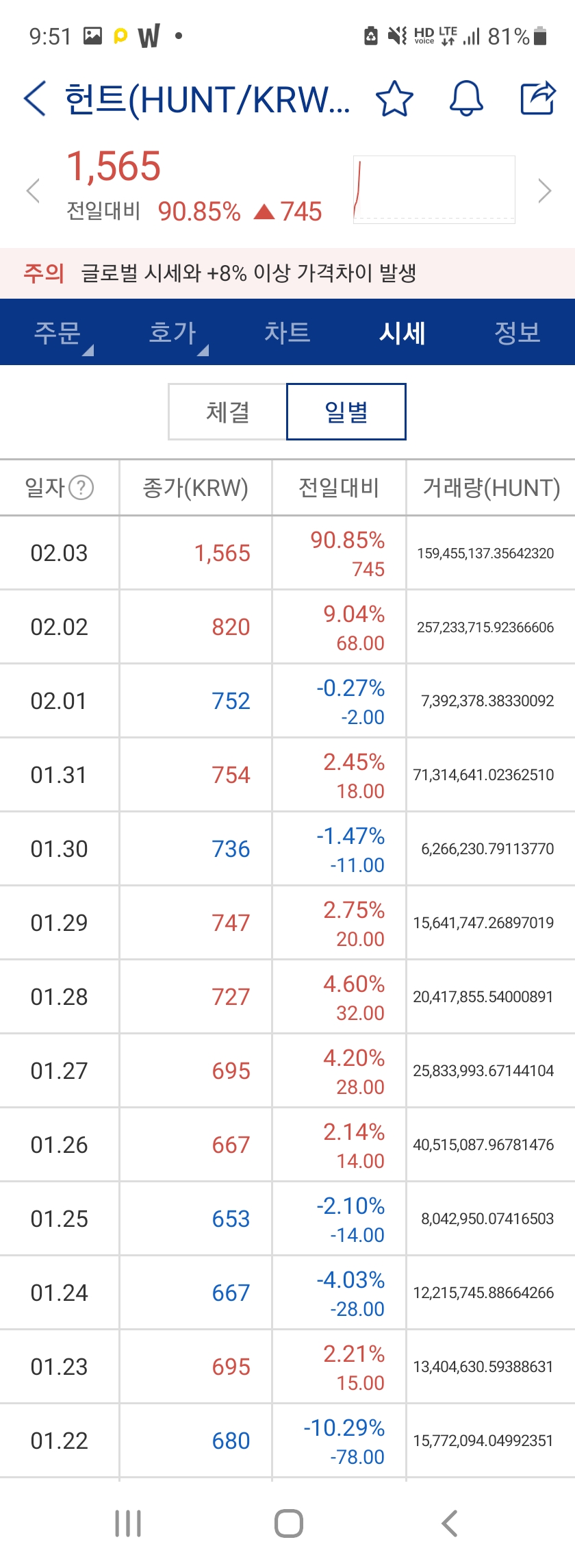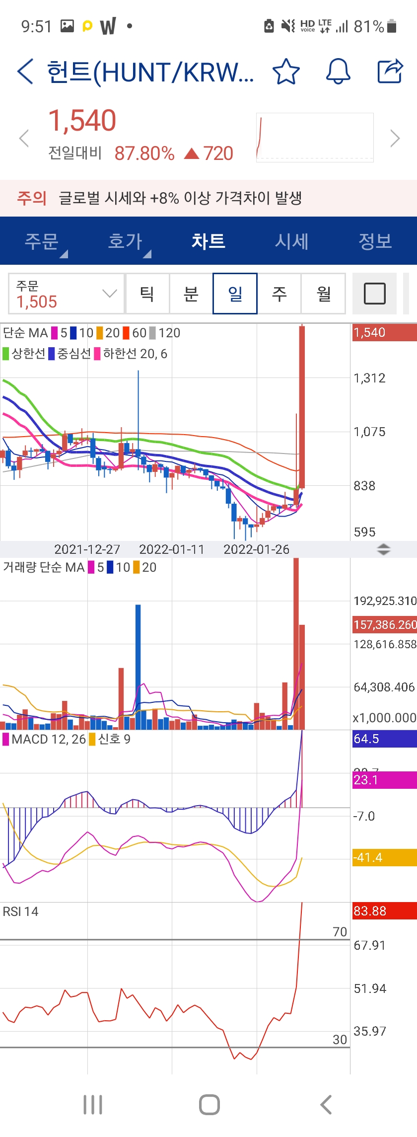 헌트는 글쓰기전에 100퍼 넘게 상승하다