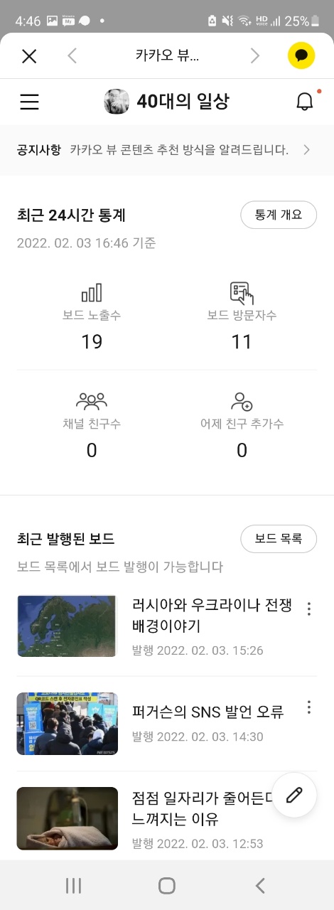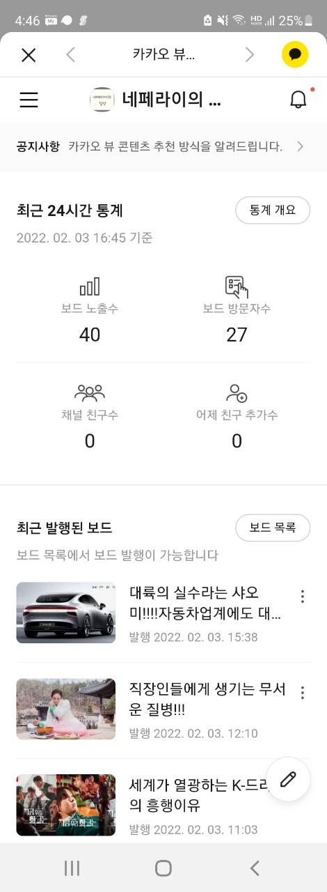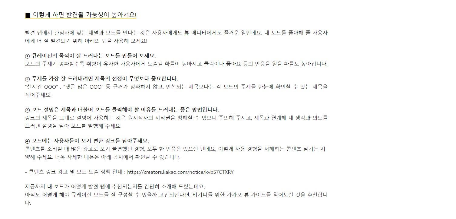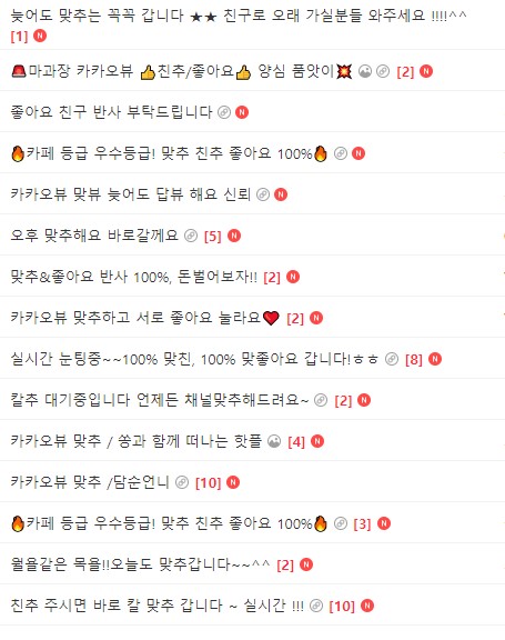 죄다 카카오뷰 채널 품앗이나 좋아요 교환글이 거의 95%이상이고