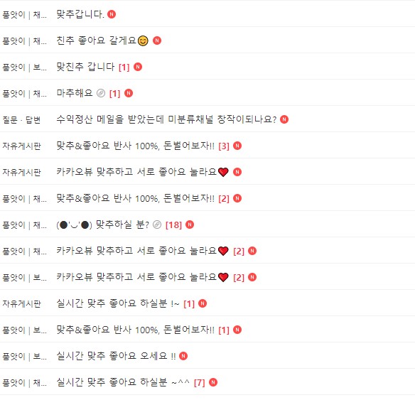사람들 대부분이 수익이 우선이기에 저렇게 품앗이와 좋아요 교환글을