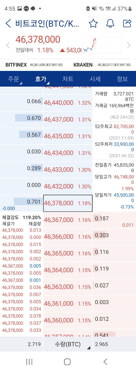 비트코인은 엊그제 -4%이상 떨어진 뒤로 하루사이에도