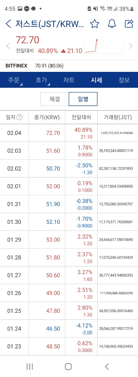 저스트 코인을 보면 바닥한번 찍고 급등하고 있는데 아직 천장을 찌지않은상태여서