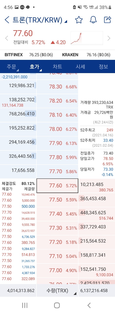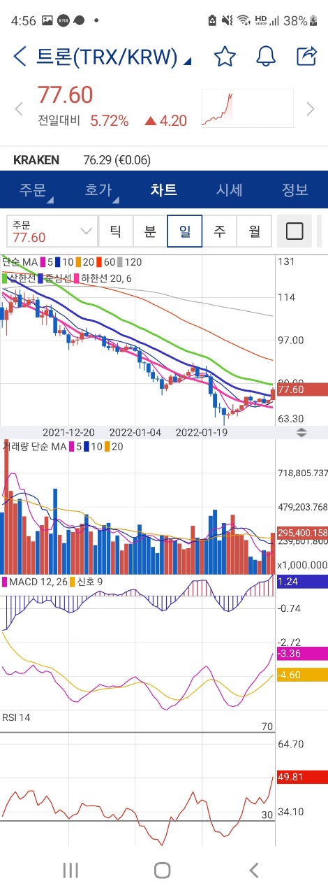 트론도 저스트 급등할때 같이 급등하면서 오르고 있긴한데
