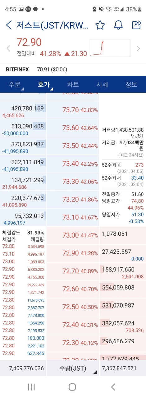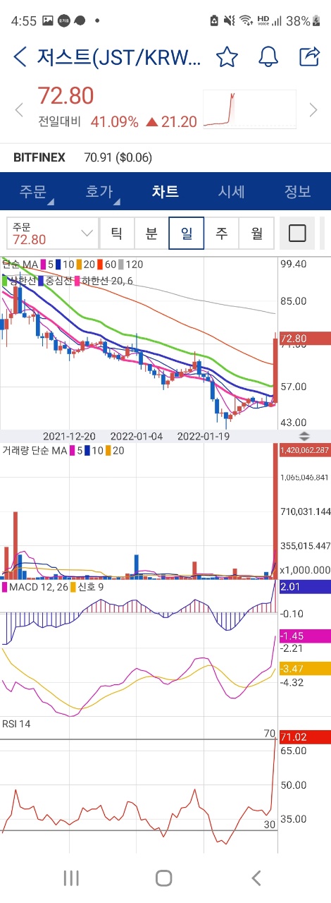 저스트 코인을 보면 바닥한번 찍고 급등하고 있는데 아직 천장을 찌지않은상태여서