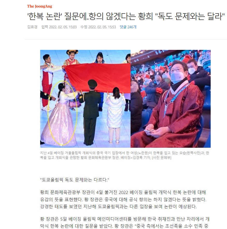 은근슬쩍 우리 고유의 한복도 중국에서 시작된 것처럼