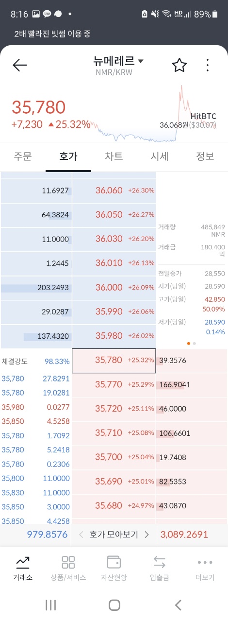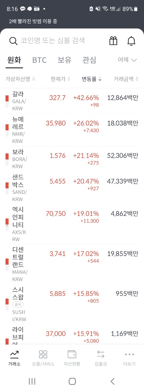 빗썸도 같이 펌핑이 오는데 펌핑되는 코인들을 보니